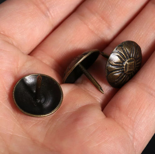 Свою историю украшение в форме мебельных гвоздиков берет еще в начале 15 века с приходом эпохи Ренессанса. В это время от кресел, стульев и скамей (диваны тогда не были распространены) люди хотят получать больше комфорта. Именно поэтому предметы интерьера дополняют не только искусной резьбой, ковкой, но и мягким сиденьем из ткани или кожи. Но эти материалы надо было соединить с деревянной основой и тут на помощь пришли небольшие мебельные гвоздики, которые со временем превратились в настоящий элемент декора для классических диванов и кресел.